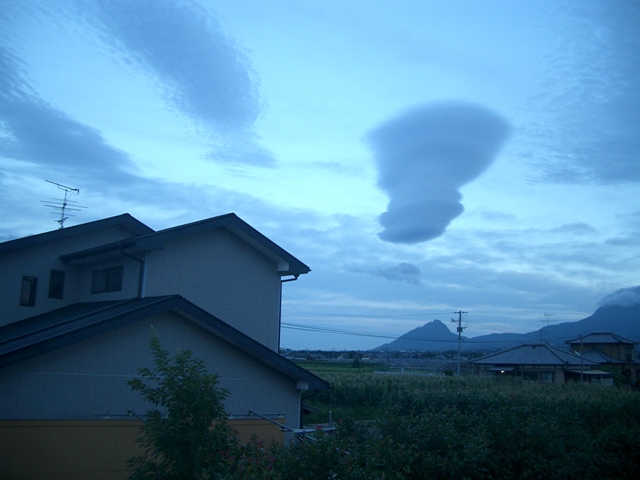 | 夕方帰宅したら何とも不思議な形の雲が…。吉兆? |