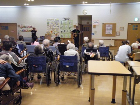 | 笑顔で唄いながら元気に手拍子をして下さる方や | 涙ぐみながら唄って下さる方も…。 |