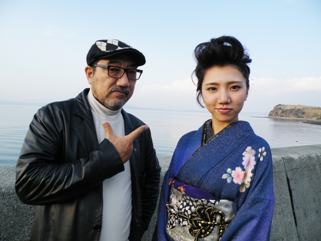 | 新成人へエールを送る力強い演奏を披露した瑞宝太鼓 | 自慢の娘とのツーショット♪(やや緊張気味?) |